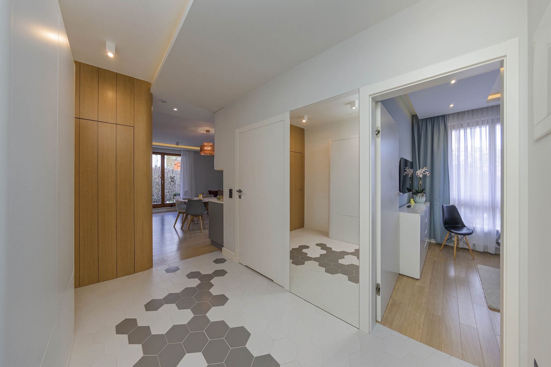 przedpokój: przestronna szafa, odkurzacz, żelazko, deska do prasowania, suszarka do ubrań