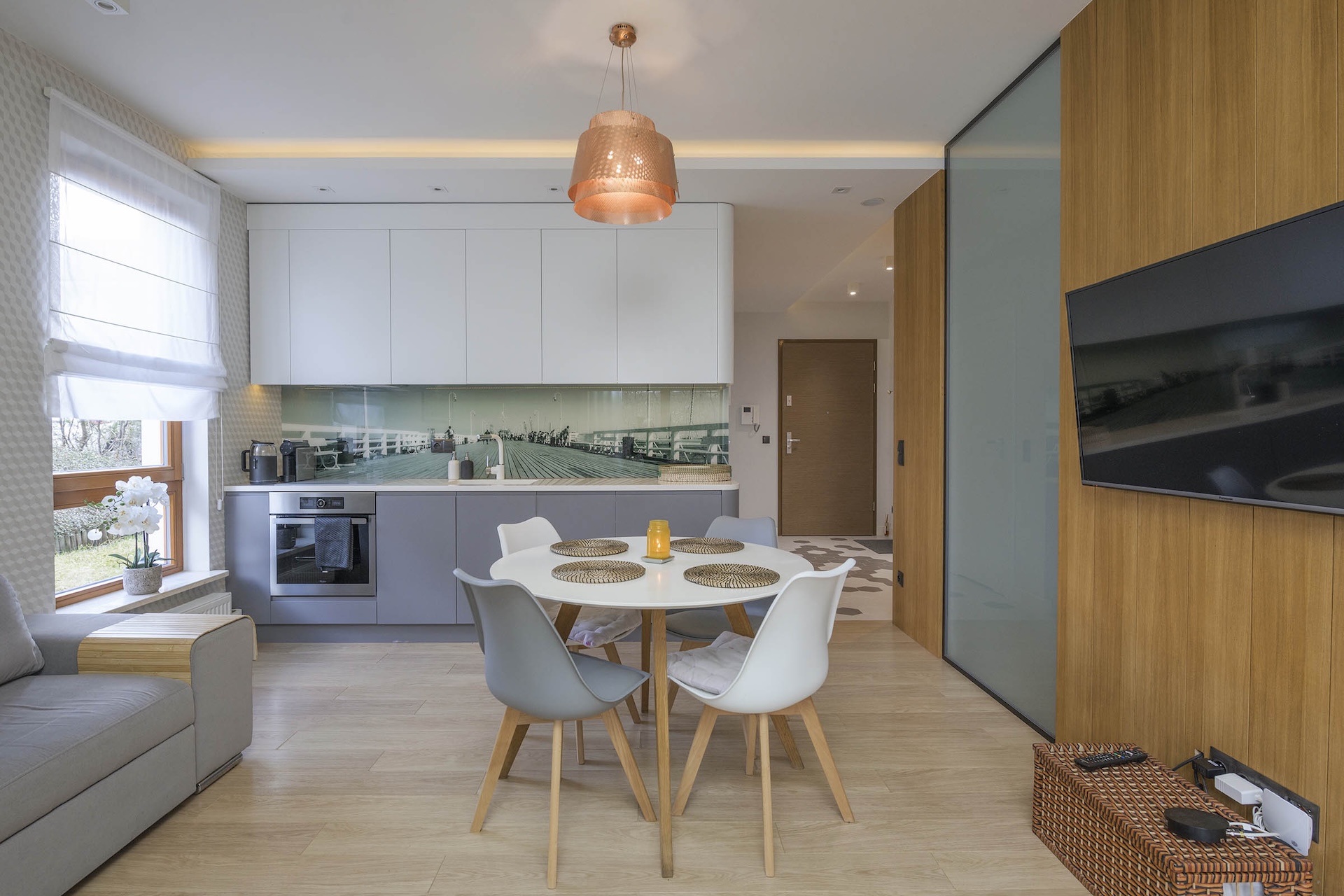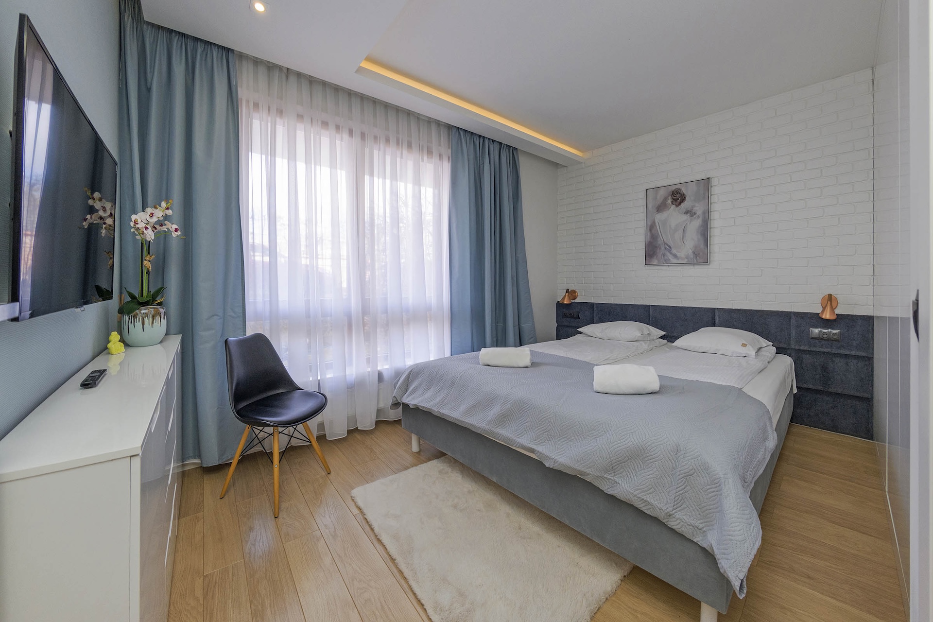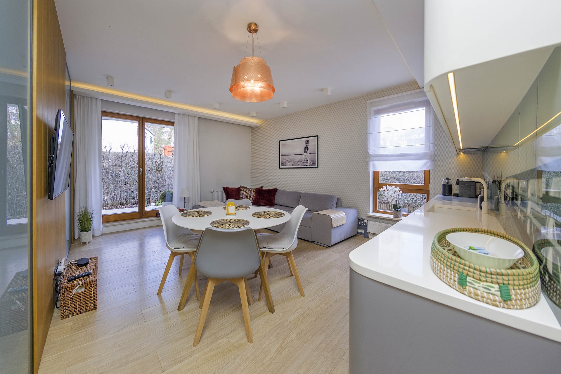 Apartament o bardzo wysokim standardzie wykończenia z dbałością o każdy detal – idealny dla 4 osób dorosłych zarówno do celów biznesowych jak i wypoczynkowych.