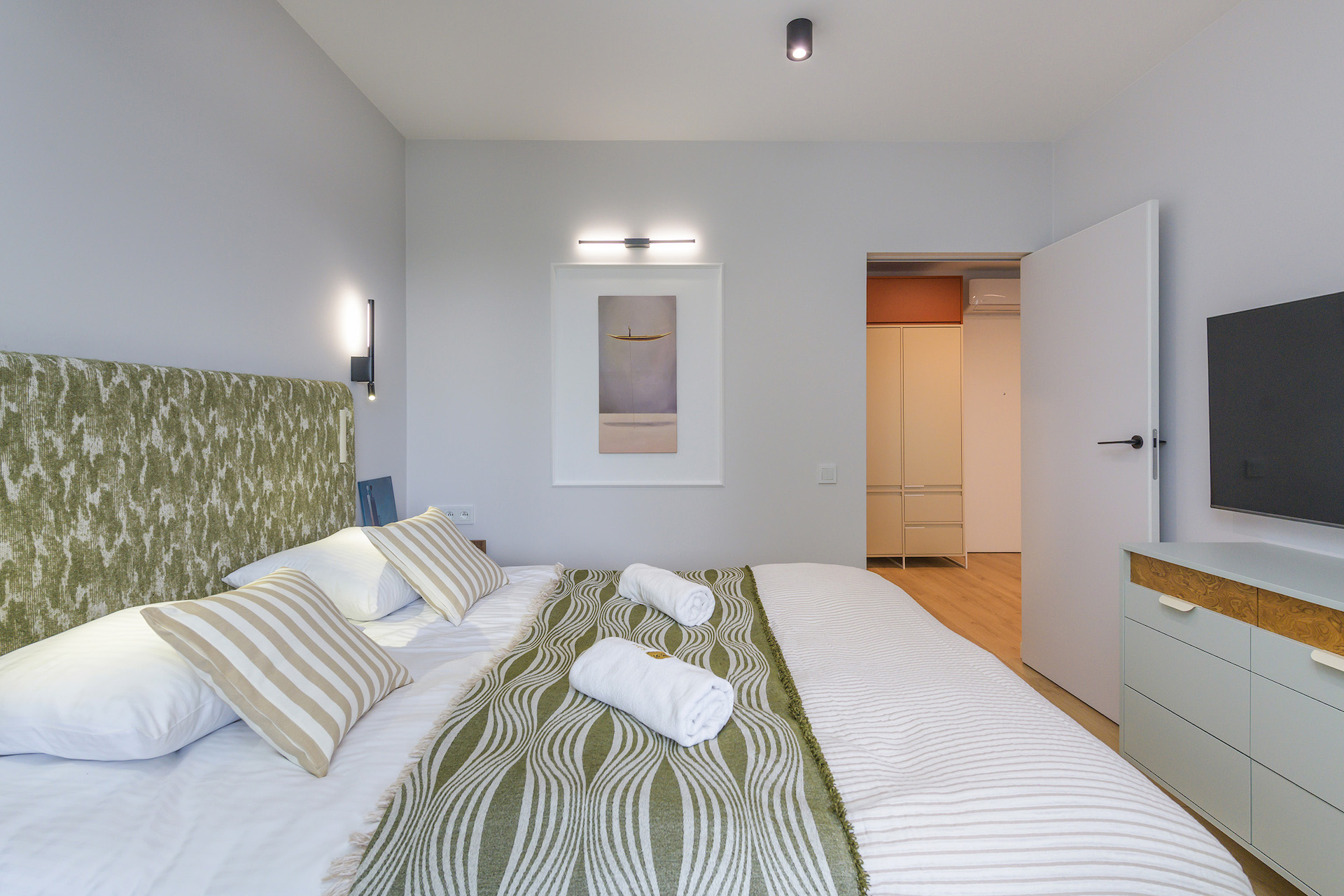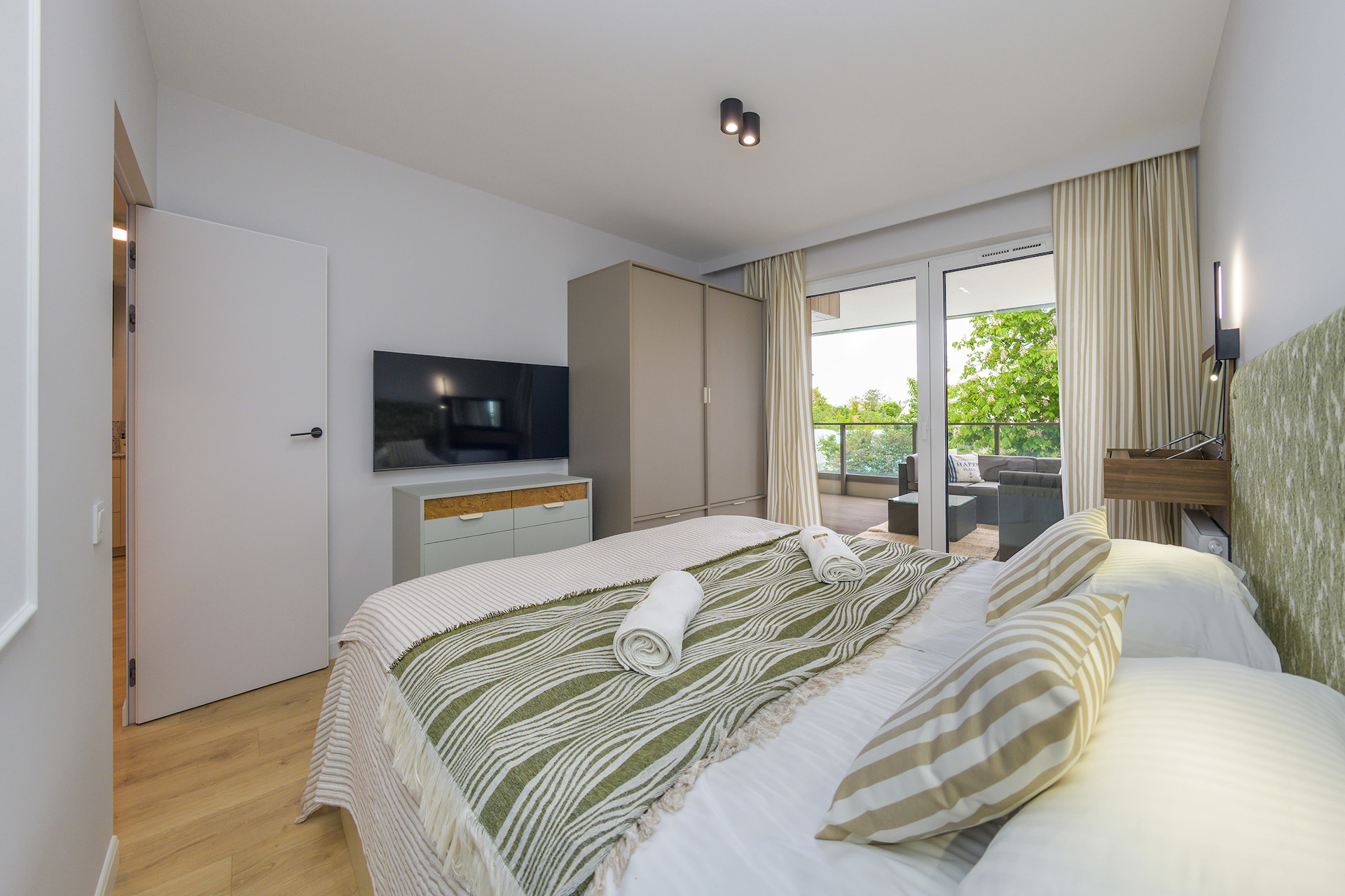 – sypialni z łóżkiem małżeńskim typu King Size o wymiarach 160×200 cm