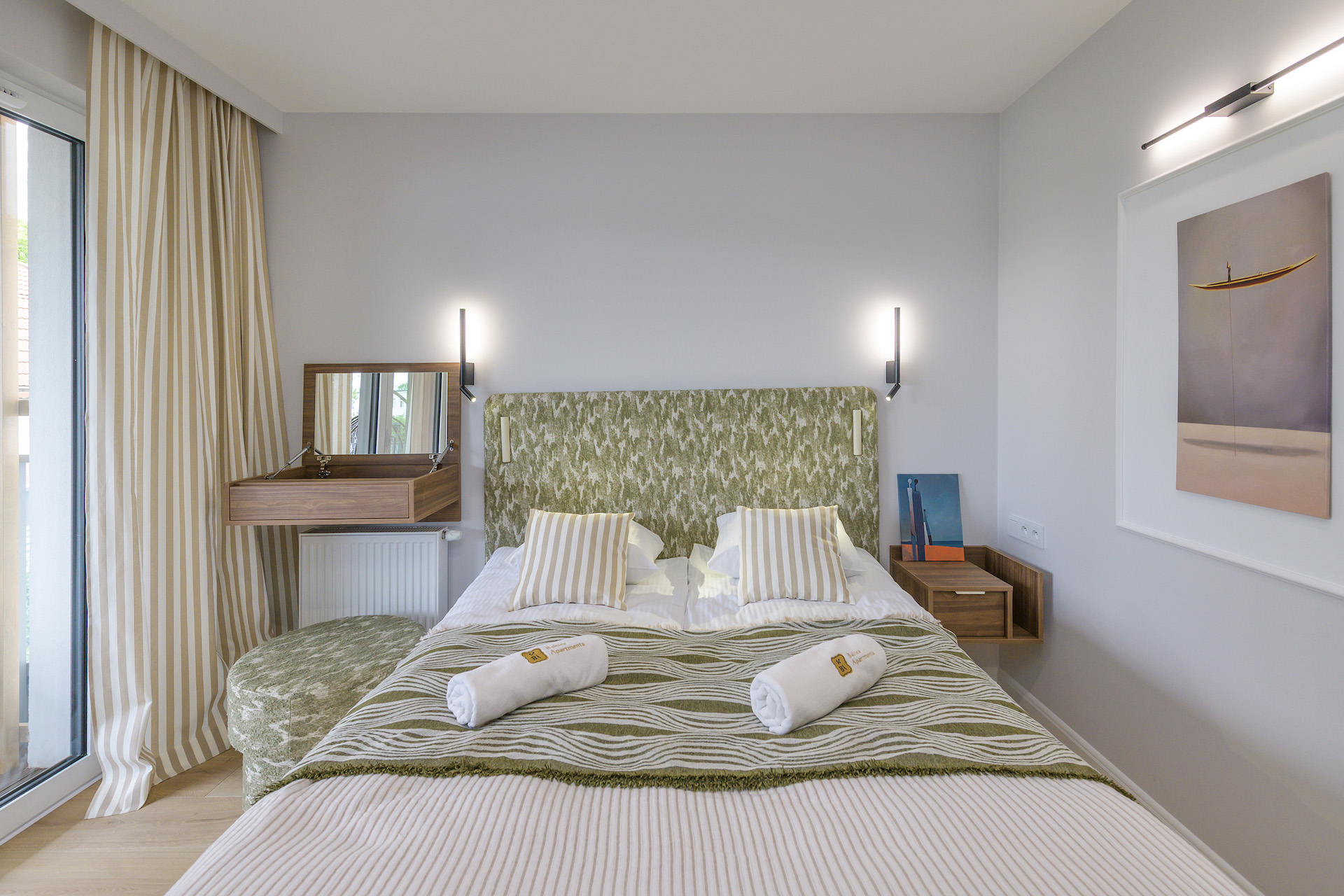 Wyjątkowy apartament „Terrace&Breeze – Beach Side” zlokalizowany jest w kompleksie Rezydencja Merwede zaledwie 50 metrów od plaży i promenady nadmorskiej. To niezwykłe miejsce nie tylko z uwagi na bliskość kąpieliska i mola, ale też miejsc historycznych – zaledwie kilkadziesiąt metrów dalej rozpoczyna się Westerplatte. Na terenie samej dzielnicy znajduje się m.in. Park Brzeźnieński i kilka nadmorskich restauracji. Brzeźno to świetny wybór dla osób, które interesują się plażami, zabytkami i zwiedzaniem.