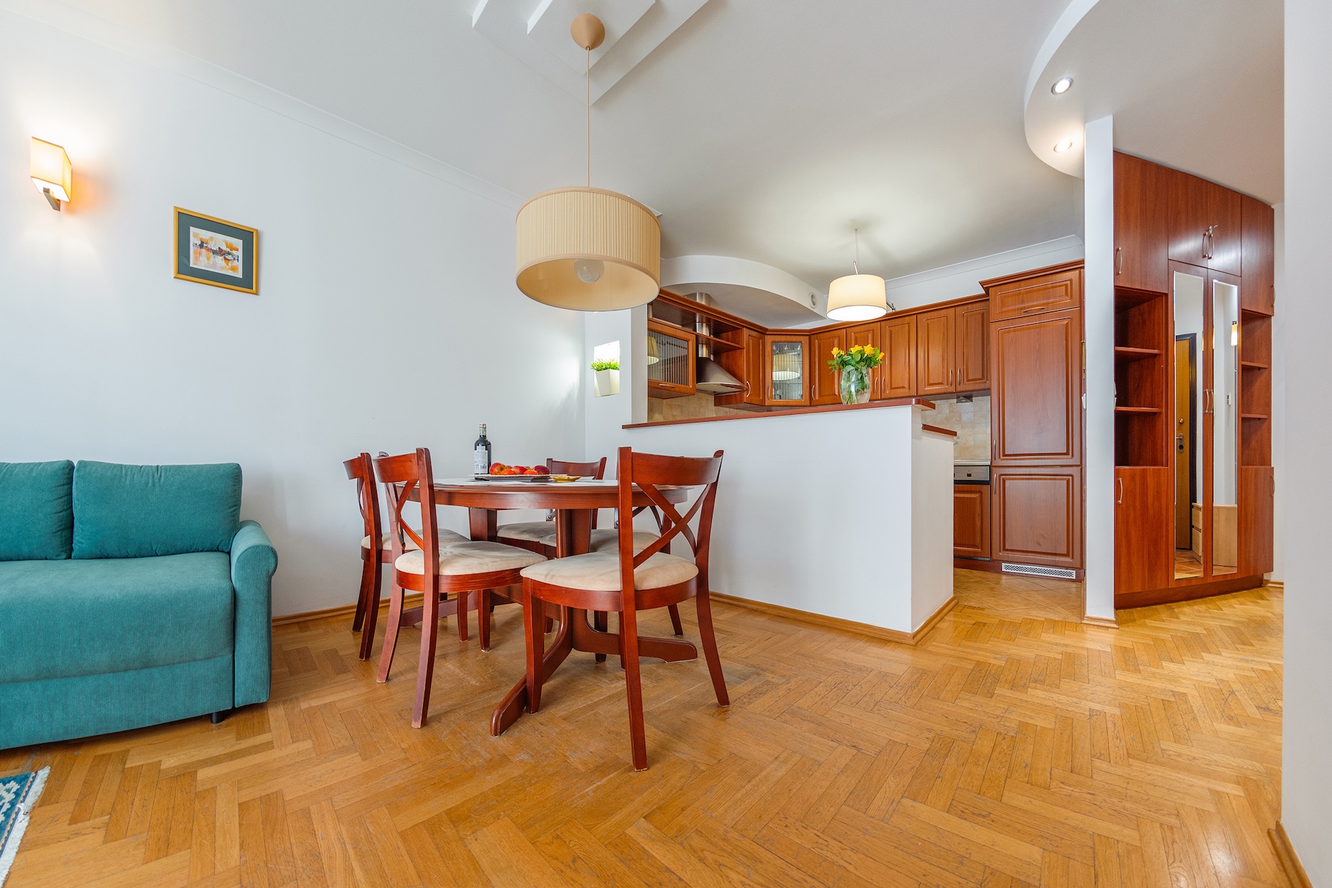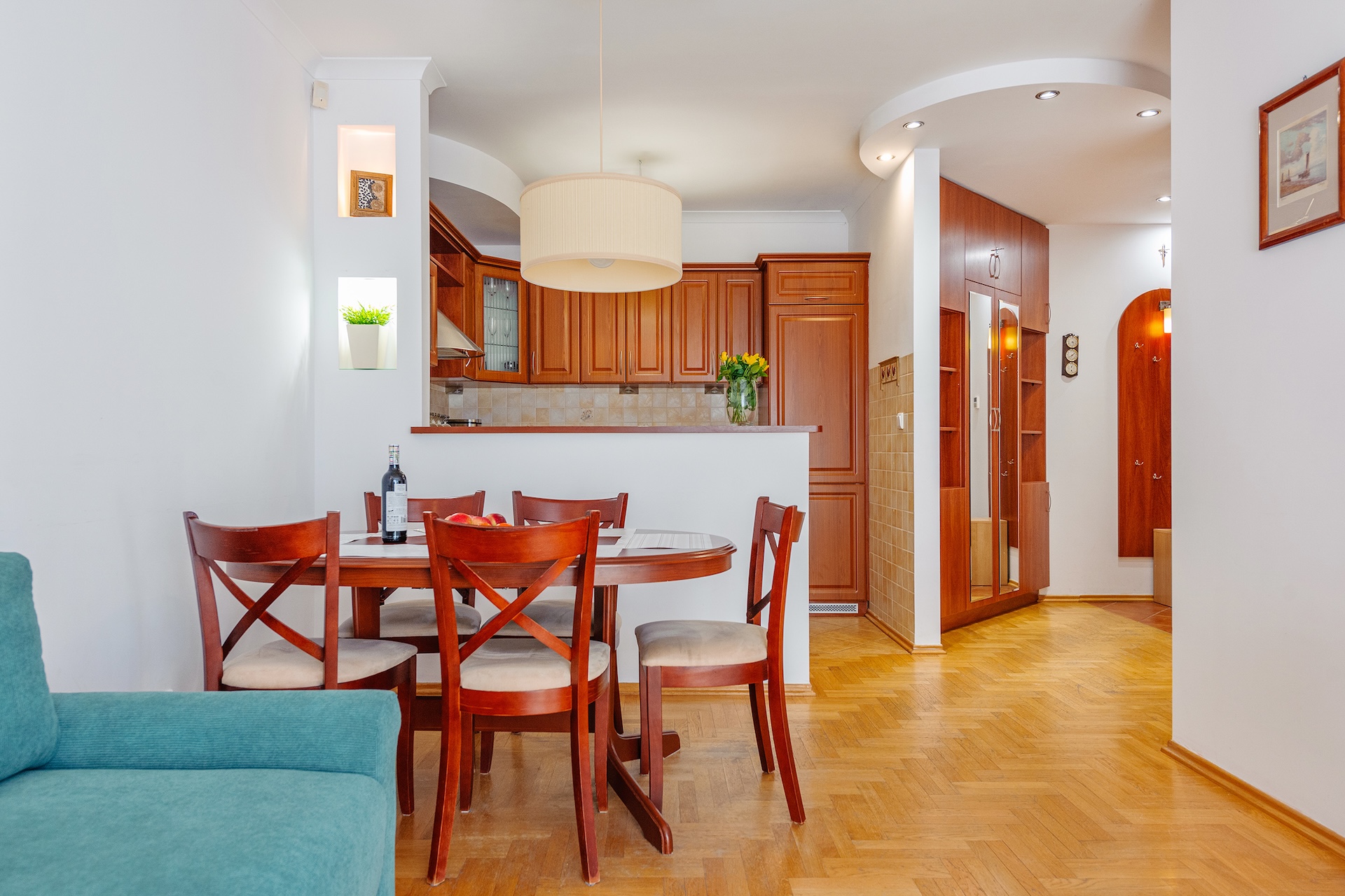 • przedpokoju z szafą w zabudowie
