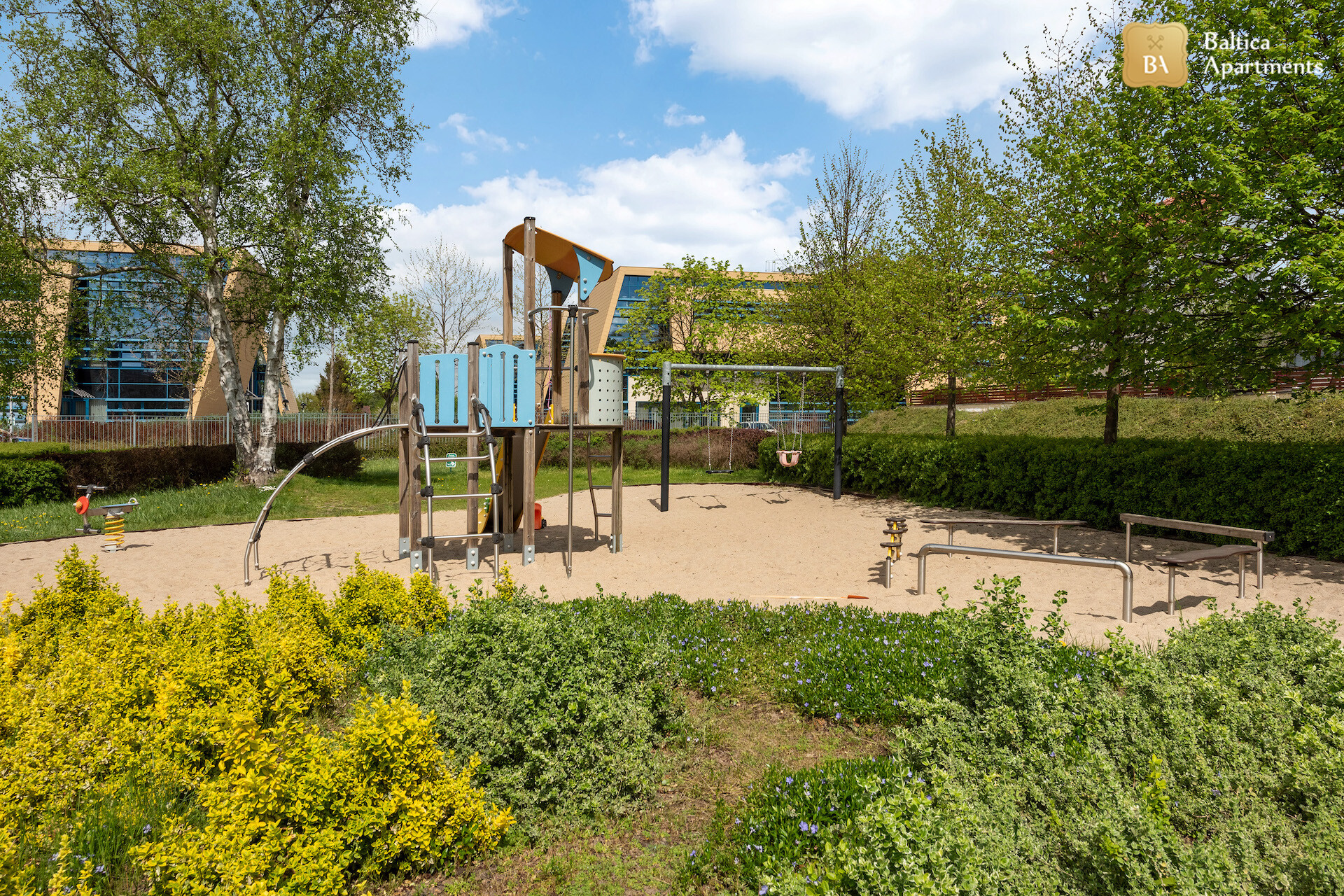 Lokalizacja wymarzona – spacerkiem 150m do plaży, promenady, wokół mnóstwo zieleni a także atrakcji dla dzieci i miłośników aktywnego wypoczynku ( liczne place zabaw, ścieżki rowerowe , tereny do uprawiania joggingu )